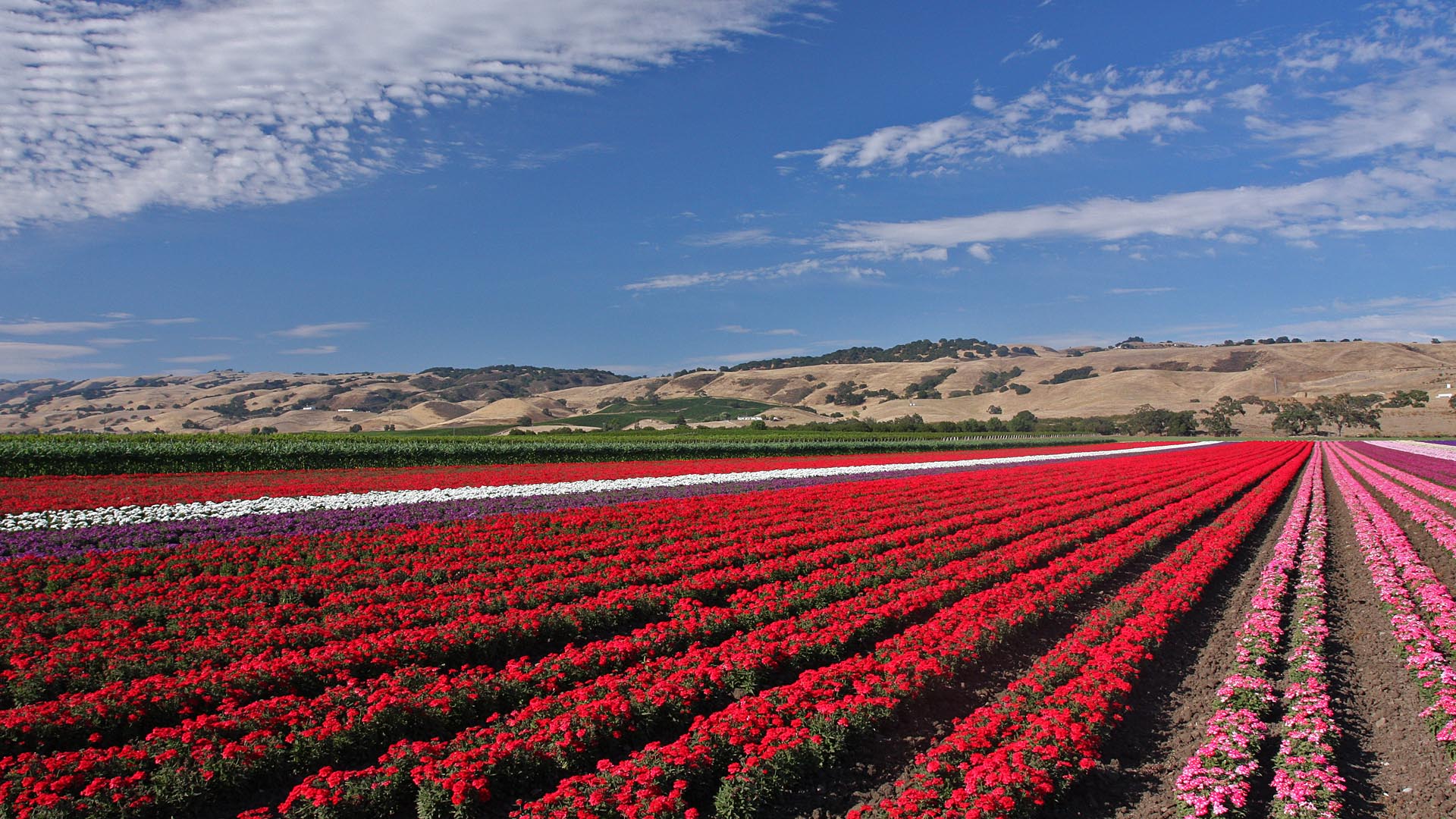 Arriving back in the San Francisco Bay area. Flower field near Gilroy, CA