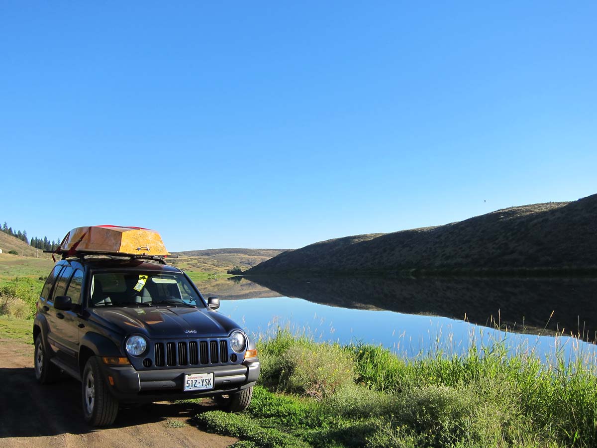 I took a side trip to the Tonasket, WA area, about 100 miles east of Winthrop, to pick up a small boat for lake fishing. It is made by Jim Wheeler at his little shop called Spring Creek Prams. Excellent build quality. It weighs 70 pounds so I am able to lift it up on top of my Jeep alone.